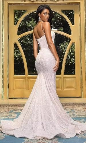 More information about Mermaid Sequin Prom Dress Spaghetti Strap Sparkly Formal Dress Tight Corset Glitter Ball Gown ZD159
