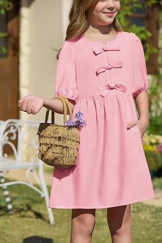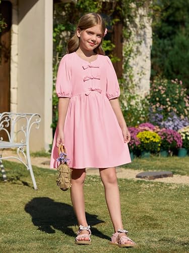 Yousify Girls Summer Dresses Cute Toddler Puff Short Sleeve Dresses A-Lined Flowy Trendy Bow tie Mini Dress Kids Outfits 4