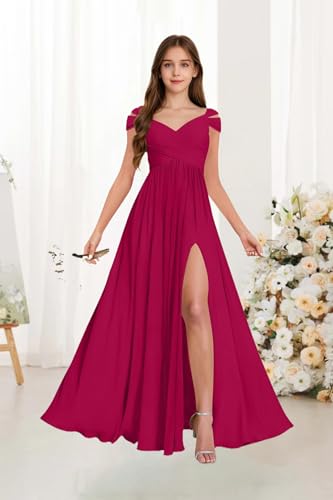 Off Shoulder Junior Bridesmaid Dresses with Pocket Pleated Chiffon Flower Girl Dress for Formal Wedding Gowns 6