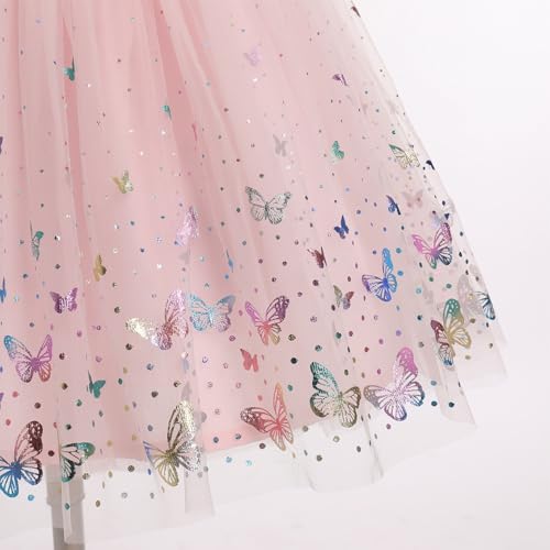 IMEKIS Toddler Kids Girls Butterfly Dress Sparkle Sequins Tulle Wedding Formal Birthday Dresses 2-10T 5