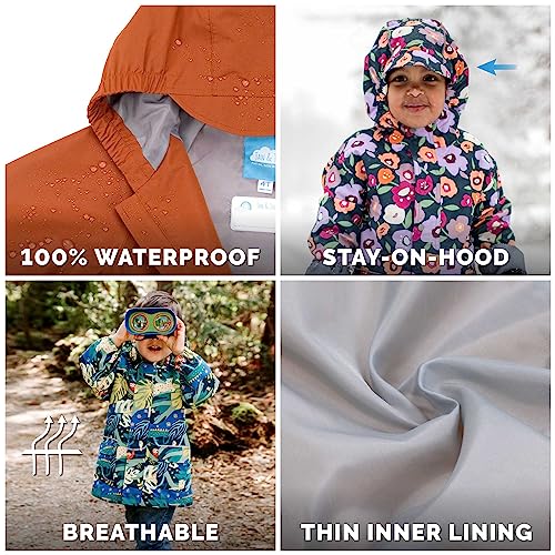 • 【BREATHABLE】The perfect kids' rain jacket for active kids – that means no clammy sweat and more play time! The active fabric breathability rating of 5000g/m2/24h allows heat to pass through but prevents moisture from entering. Lined with a comfortable, durable, and breathable liner. Offers windproof and waterproof protection without the bulk – travel friendly and perfect to pack in a school bag.