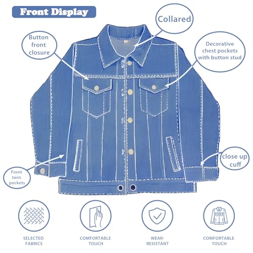 • 【Built for Big Adventures】Crafted from premium soft denim cotton that’s tough enough for the wildest playtimes and gentle enough for all-day wear, this jacket is ready to keep up with every jump, climb, and cartwheel. It is not only breathable but on-deformable. Deep pockets to stash their little secrets and treasures, adjustable cuffs to fit just right, and a roomy design that grows with them—this jacket is as practical as it is adorable