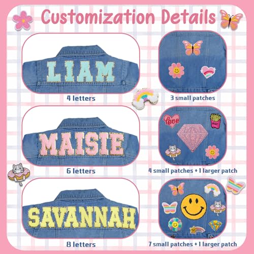 Custom Toddler Jean Jacket with Names Patches, Personalized Birthday Gifts for Kids 1-8 Years Old, Back to School Outfits for Girls & Boys - Customized Kids Denim Jacket 5
