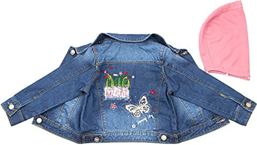 KIDSCOOL SPACE Little Girl Jean Jacket,Flower Embroidered Denim Outfits 3