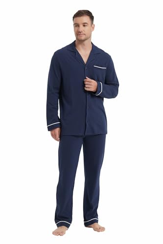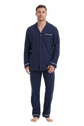 HOT ! amaxer Men's 100% Cotton Classic Pajamas Set Soft Warm Long Sleeves For Men Pockets Button Pjs Elastic High Waist