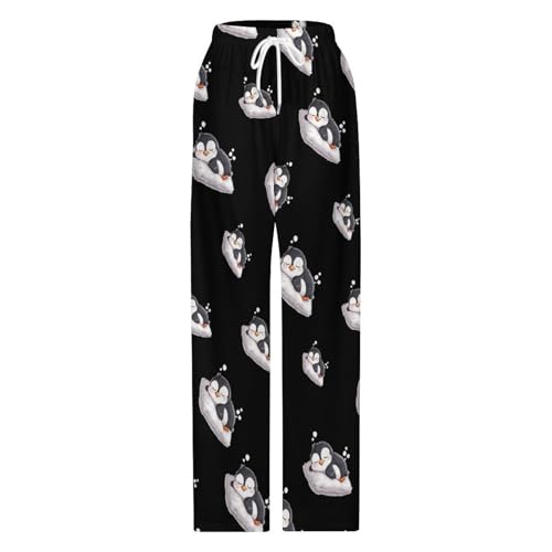 Cute Penguin Sleeping Pajama Pants with Pockets Print Loungewear Bottoms Soft Sleep Pants for Men Women 1