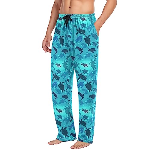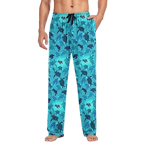 Pfrewn Mens Pajama Pants Underwater Blue Turtle Lounge Pants Super Soft Pajama Bottoms with Pockets S 7