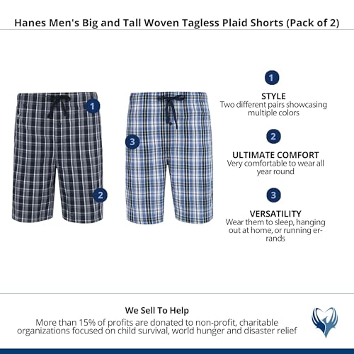 HOT ! Hanes Men's Big and Tall Woven Tagless Plaid Shorts (Pack of 2)