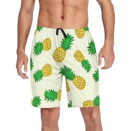 HOT ! Fruit Beige Pajama Shorts for Men Lounge Pants Sleeping Shorts Men Pajama Shorts with Pockets, S-XXL