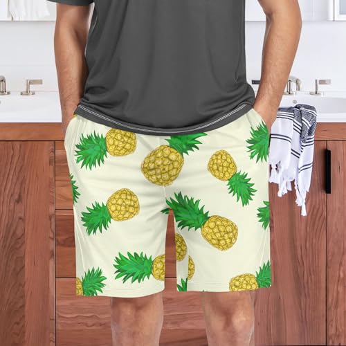 Fruit Beige Pajama Shorts for Men Lounge Pants Sleeping Shorts Men Pajama Shorts with Pockets, S-XXL 1