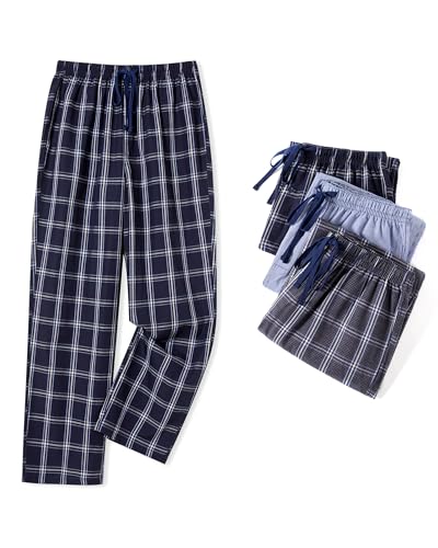 HOT ! JupiterSecret Mens Pajama Pants Set Cotton Lightweight Plaid Sleep & Lounge Pants, PJ Bottoms with Pockets and Button Fly