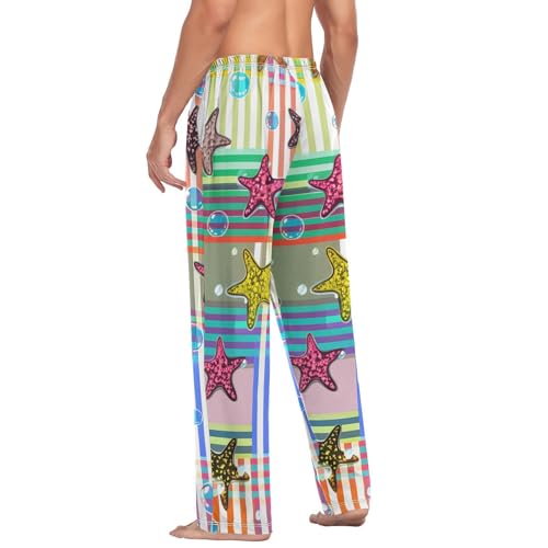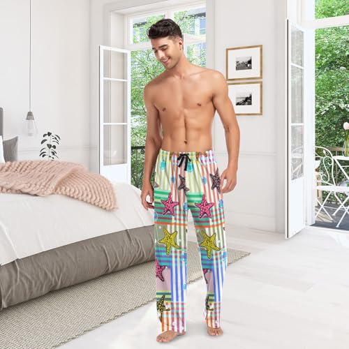 HOT ! Men's Pajama Pants Glitter Print Starfishes Sleep Pajama Lounge Pant with Pockets, Elastic Waistband