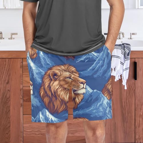 Men's Short Pajama Bottoms Lions Portrait Mountain Home Casual Sleep Pants 1