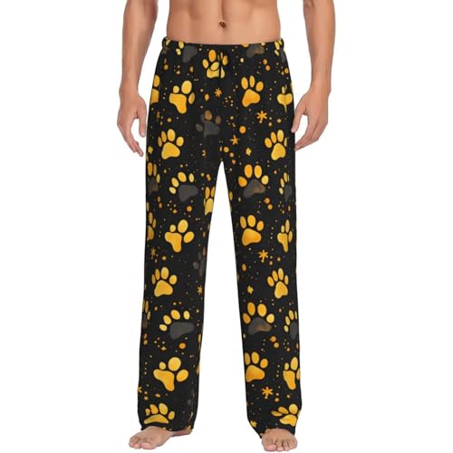 HOT ! Mens Pajama Pants - Golden Dog Paw Print Soft Sleep Lounge Pants For Men, Casual Pj Bottoms With Pockets