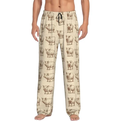 HOT ! Mens Pajama Pants - Sketch Pig Print Soft Sleep Lounge Pants For Men, Casual Pj Bottoms With Pockets