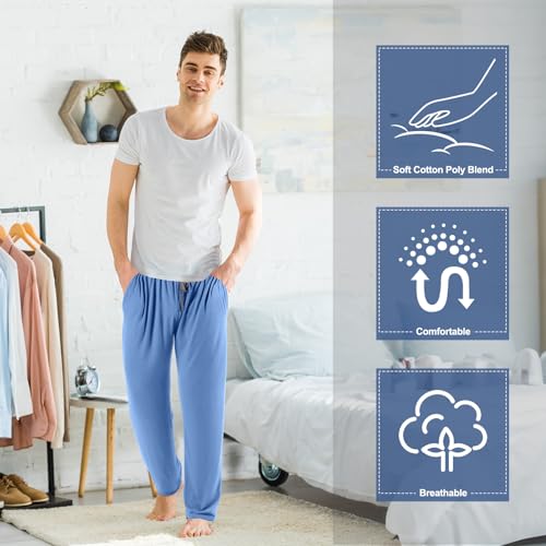 3 Pack Mens Cotton Sleepwear Pajamas Pants with Pockets Soft Sleep Lounge Bottoms Sleep Pj Bottoms for Men 4