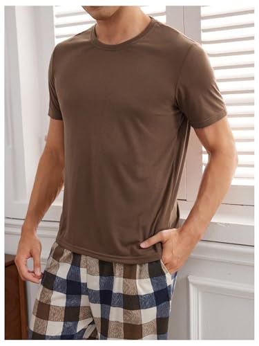 Men's 2 Piece Pajama Set Crew Neck Short Sleeve T Shirt and Plaid Pants Loungewear 5