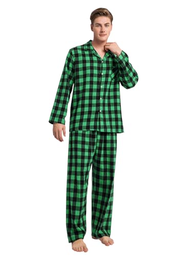 QZH.DUAO Family Plaid Pajamas For Mens, Family Adult 2-Piece Button Down Flannel Christmas Pjs Sleepwear, Black Green, US S 6