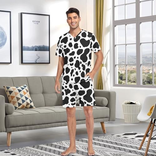 • Comfortable Material: Men short pajamas set is made of 95% polyester + 5% spandex fabric blend, cotton-like modal. soft and comfortable, skin-friendly and breathable, bringing you a free stretching sleep experience.
