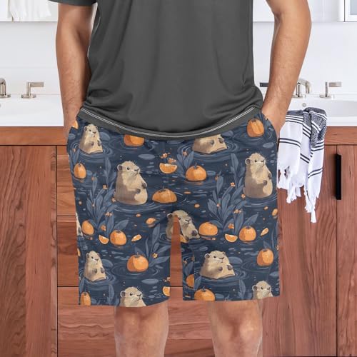ALAZA Otter Orange Fruit Flower Men's Pajama Shorts Sleepwear Pajama Bottom Lounge Pants Wear with Pocket 4