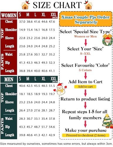 • 【Purchase Separately】One package contains only one set of pajamas (one top & one pants). These family christmas pajamas matching sets are sold separately so you need purchase women's or men's pajamas individually