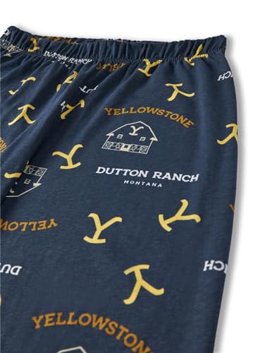 Y Yellowstone Mens Pyjama Set | Adults Dutton Ranch Tan Short Sleeve Graphic Tee & Navy All Over 6
