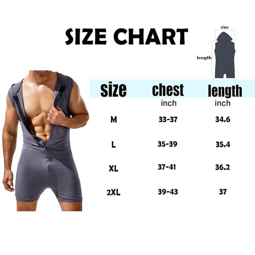 Men's Sexy Hoodie Jumpsuit,Party Sleeveless Sport Button-Down Short Slim Fit Elasticity Sleepwear XXL Black Grey 6