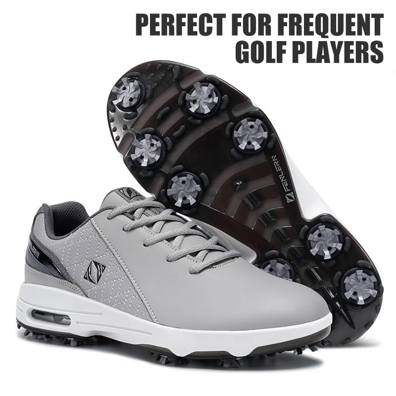 HOT ! FENLERN Golf Shoes Men, Spiked, Waterproof Leather Upper, Cushioning F006