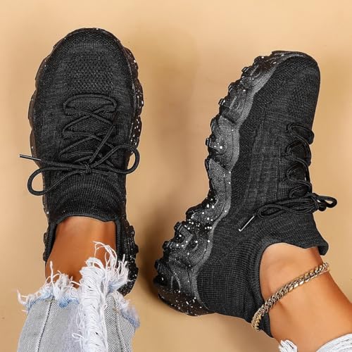 VOODUE Izarna Shoes, Izarna Simplysnug Shoes, Women's Breathable Knitted Casual Walking Shoes, 2024 Summer Lace Up Low Top Slip On Sneakers for Men Women(Black,US 9.5) 6