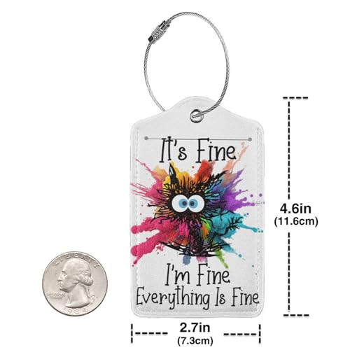2 Pack Luggage Tags for suitcases Funny Cute I'm Fine It's Fine Luggage Tag, Leather Stainless Steel Loop Label Tag for Men Women Travel Bag Suitcase(White Fine) 7