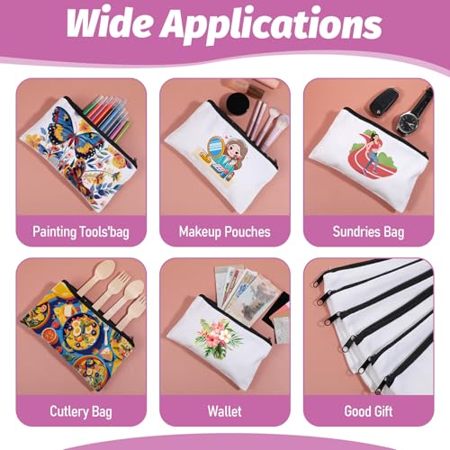 60Pcs Sublimation Blank Canvas Makeup Bags, Bulk Small Canvas Bags With Zipper, Heat Transfer Cosmetic Makeup Bags, Travel Toiletry Pouch Storage, Bridesmaid Makeup Bag 7