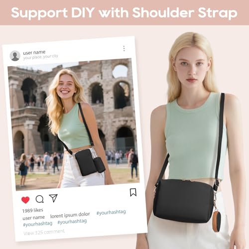 Joyway 10PCS Travel Makeup Bag Set, Large Capacity Cosmetic Bags for Women Girls, Waterproof Portable Toiletry Bag Organizer Make up Bag, Can be fitted with suspenders(Black) 4