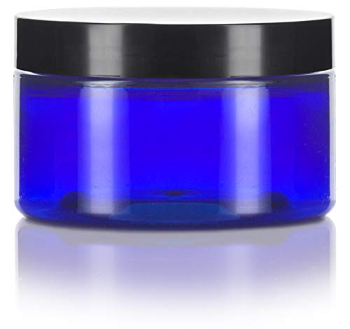 4 oz Cobalt Blue PET Plastic Low Profile Jar with Black Lids (12 pack) Refillable Empty Containers 4