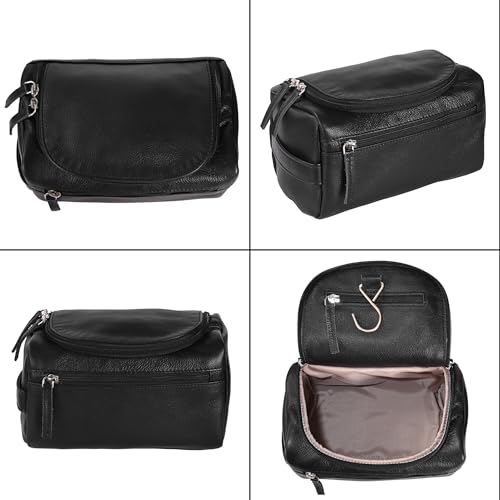 ELIZO Premium REAL Leather Toiletry Bag for Men Dopp Kitt Hanging Mens Toiletry Large TSA Toiletries Bag Shaving Grooming Bag Organizer Black 4