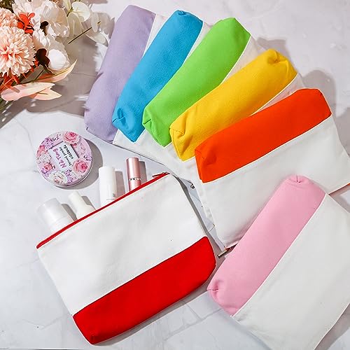 Sweetude 24 Pcs Canvas Cosmetic Bags Bulk 9.84 x 5.12 x 1.97 Inches DIY Blank Makeup Organizer Bag with Zipper Multi Purpose Canvas Pencil Pouch Toiletry Pouch for Women Travel 7