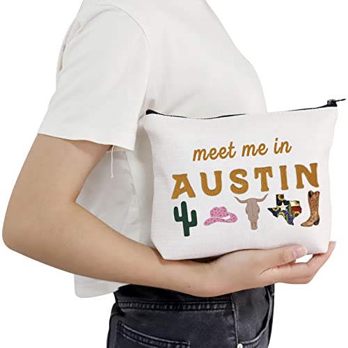 POFULL Austin Gifts Texas Bachelorette Party Makeup Bag Meet Me in Austin Travel Cosmetic Pouch 1