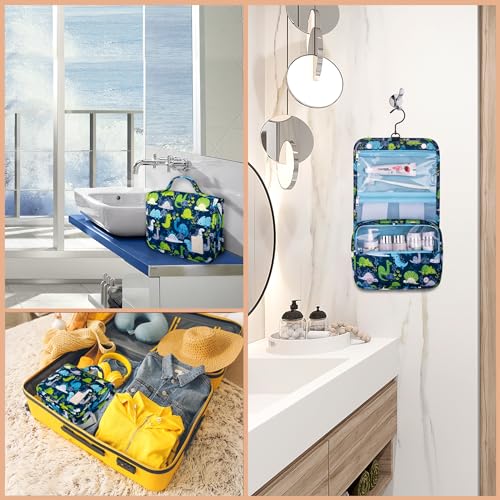 Eudora Hanging Travel Kids Toiletry Bag for Boys, Waterproof Travel Organizer, Cute Dinosaur Snake Cartoon Cosmetic Bath Bag with 360 Rotatable Hook (Blue) 6