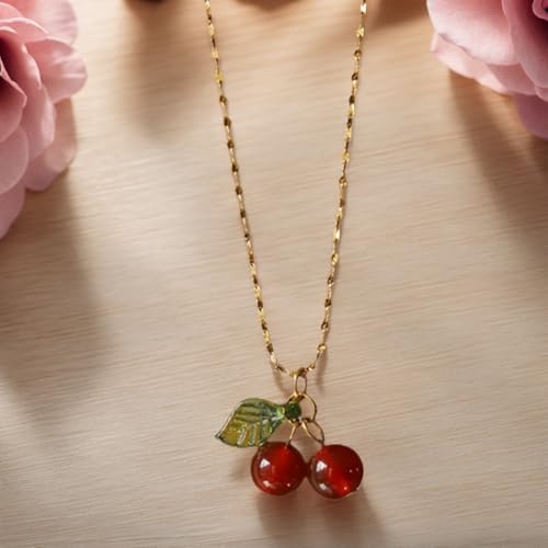 • Coordinating accessories: A delicate cherry necklace and gold keychain charm complement the theme of the set and a stylish touch