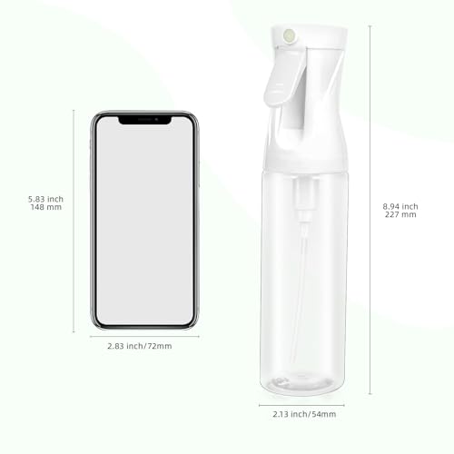 Continuous Spray Bottle – Patented Superior Ultra-Fine Mist Sprayer for Hair Styling, Plants & Cleaning, Durable 360° Leak-Proof BPA-Free Refillable Mister, White 300 ml / 10 oz 6