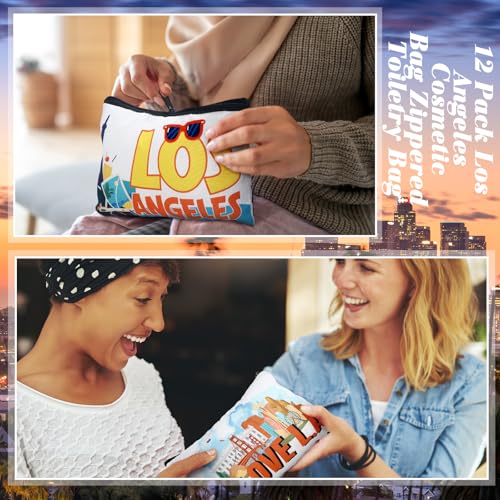 Reginary 12 Pack Cosmetic Bag Travel Souvenirs Gift Makeup Bag Lover Gifts Friendship Family Toiletry Storage for Women Vacation Traveller Trip(Los Angeles) 1
