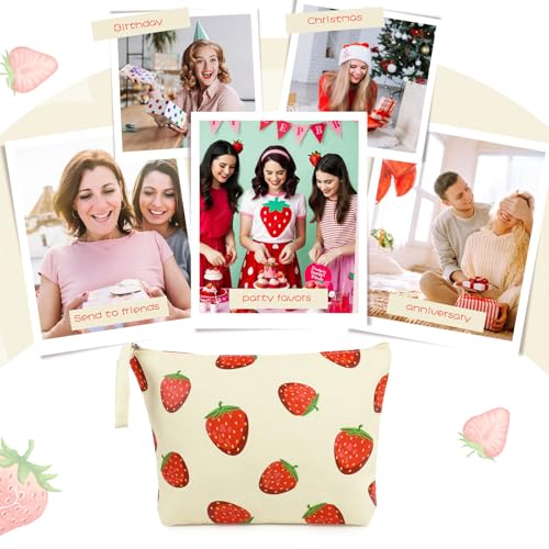 • 【Strawberry Makeup Bag】You will receive a strawberry makeup bag with cute strawberry print, brimming with youthful sweetness, ideal for storing cosmetics or as a stylish on-the-go accessory