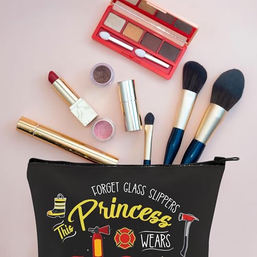 VAMSII Women Firefighter Makeup Bags Firefighter Gear Toiletry Travel Bag This Princess Wears Fire Boots (Fire Boots) 1