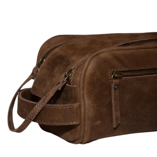 • Leather Toiletry Bag : Vintage Travel Shaving & Dopp Kit : for Toiletries, Cosmetics & More : Spacious Interior & Waterproof Lining : Compact, Fits Easily in Luggage (Made in India)