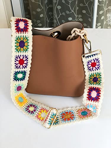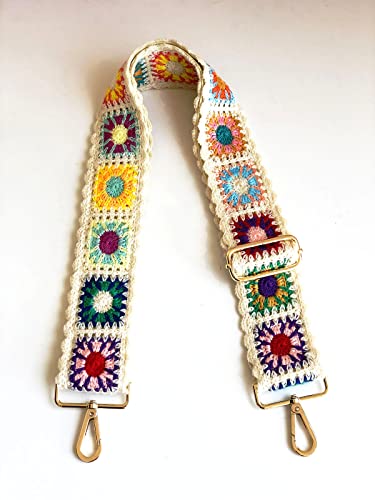 HOT ! Crochet Flower Purse Straps Replacement Crossbody for Handbags Women Guitar Strap 2 inch Wide Adjustable Bag Strap (White)
