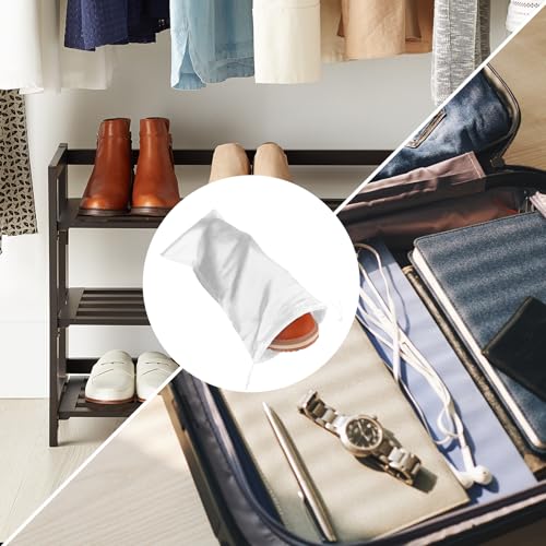 4 Pack Shoe Bags for Travel Satin Fabric Shoe Bag Portable Shoe Dust Bags with Drawstring Shoes Storage Bags 6.9" X 14" Cotton Drawstring Bags White Shoe Covers for Storing Shoes 5