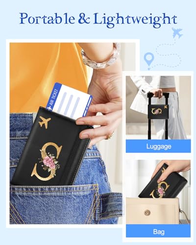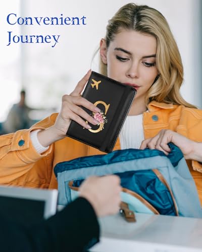 Slohif Initial Passport Holder Cover Wallet Case for Travel Women - Leather Letter Passport Book Family Multiple Personalized Organizer Card Slots Protector Sleeve Essentials Slim Carrier Black S 1