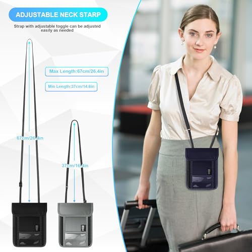 HOT ! Neck Wallet with RFID Blocking, Waterproof Travel Passport Holder with Adjustable Strap, Passport Wallets Pouch Travel Essentials for Women Men (Dark Blue)