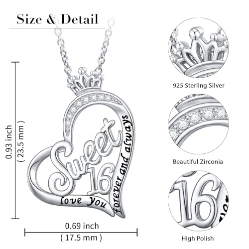 • 16th Birthday Necklace for Women: To love her is to admire her with heart, and to bring joy to her life. 16 year old birthday is a memorable milestone in her life. Years later, she can use this heart necklace to miss the good old days.Engraved 'I love you for always and forever' on the pendant to express the best wishes to your love one.