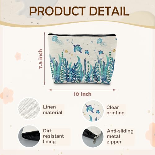 Sea Turtle Gifts Makeup Bag, Ocean Turtle Gifts for Women, Turtles Cosmetic Bag Coastal Beach Makeup Bag Pouch 3