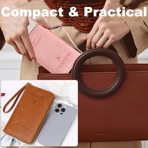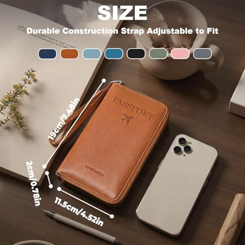HOT ! Multi-Functional RFID Passport Wallet, Passport Holder Holder for Travel Essentials, Secure ID Card Organizer with Anti-Theft Protection, Slim Leather Travel Wallet for Women Men (Black)